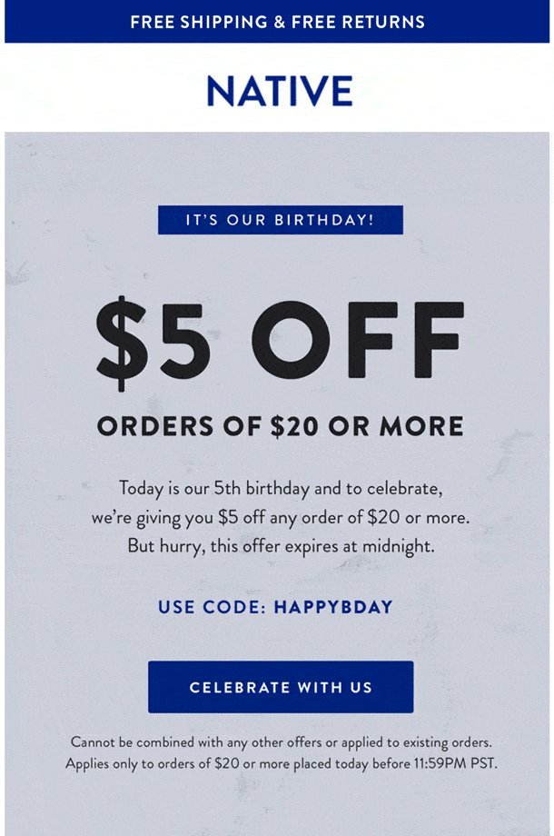 Spesielt bursdagshilsener har høy konverteringsrate, da disse tilbudene eller gavene ofte blir sett på som unike, personlige og «tidspresset». Det er forskjellige måter å vise kundene dine takknemlighet på på bursdagen deres, og en bursdagsmelding kan se ut på mange forskjellige måter. Din kreativitet er bare begrenset av fantasien din. Her deler vi noen eksempler på forskjellige bursdagshilsener: