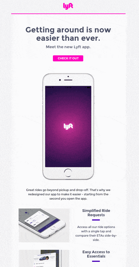 Med en GIF kan du raskt gjøre e-posten din mer dynamisk og energisk. Hvis du lager en e-post med enkelt innhold og inkluderer en morsom og uttrykksfull GIF, kan du effektivt øke CTR med opptil 73 % .